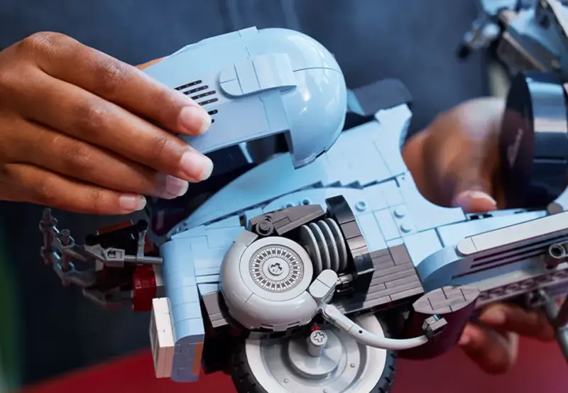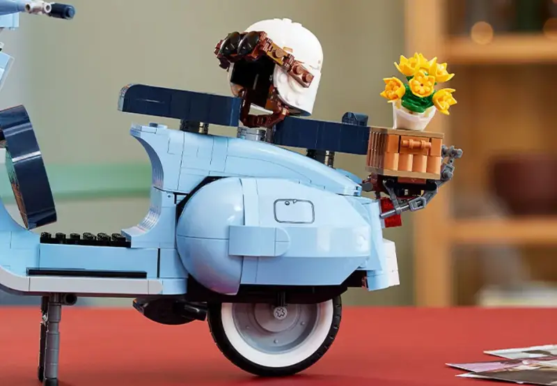 Deze scooter, geïnspireerd op de klassieke Vespa Piaggio uit de jaren 1960, heeft een pastelblauwe kleur, een erg zeldzame LEGO kleur, die bouwfans zeker zal aanspreken. Om het 75-jarig bestaan van Vespa te vieren, hebben de LEGO ontwerpers nauw samengewerkt met het merk om dit prachtige model na te maken.